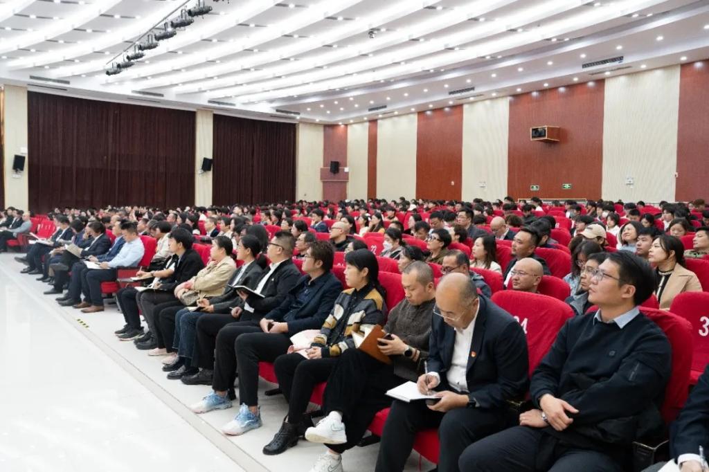 10月23日下午,学习贯彻党的二十届三中全会精神省委教育工委宣讲团成员、河南职业技术学院党委书记厉励来到我校宣讲党的二十届三中全会精神。河南艺术职业学院领导班子成员、全体中层副职及以上干部、教师及学生代表近600人参加宣讲会。河南大学河南戏剧艺术学院、河南艺术职业学院党委书记冯向军主持宣讲大会。